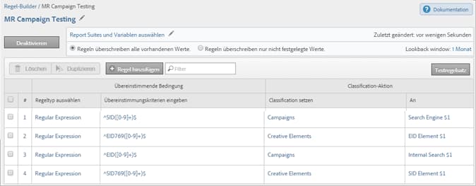 Ein Regelsatz ist eine Gruppe von Classification-Regeln für eine bestimmte Variable. Auf den Regelsatz wird eine Variable angewendet. Sollen mehrere Regelsätze für eine einzelne Variable erstellt werden, so müssen Sie jeden Regelsatz auf mehrere Report Suites anwenden.