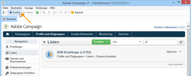 Weitere Informationen zum (Arbeiten mit Auflistungen finden Sie in der Dokumentation zu Adobe Campaign v8 (Konsole).