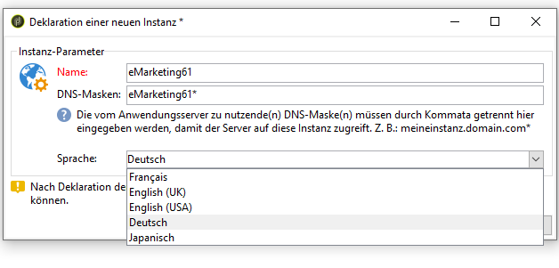 Die Sprache wird bei der Installation der Adobe Campaign Classic-Instanz ausgewählt.