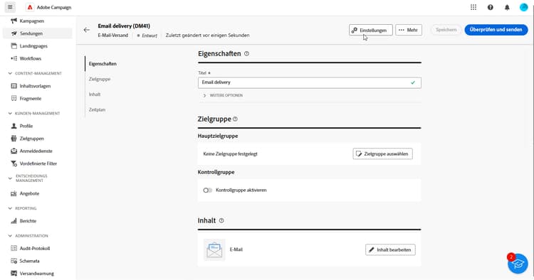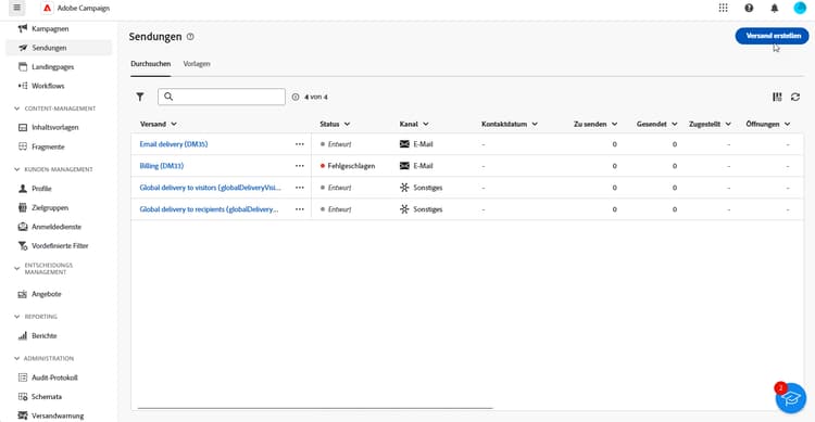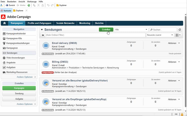 Um einen neuen Versand zu erstellen, navigieren Sie zur Registerkarte Kampagnen.