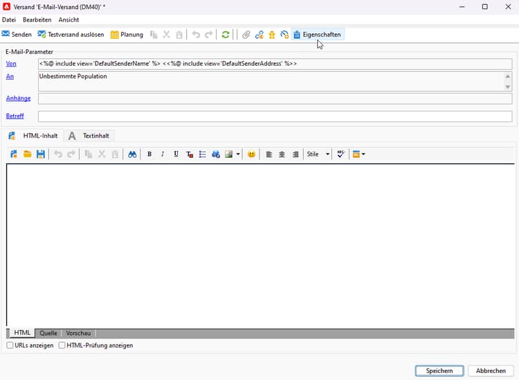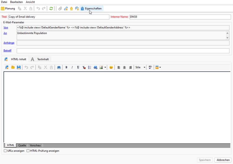 Rufen Sie die Eigenschaften der ausgewählten Versandvorlage auf.