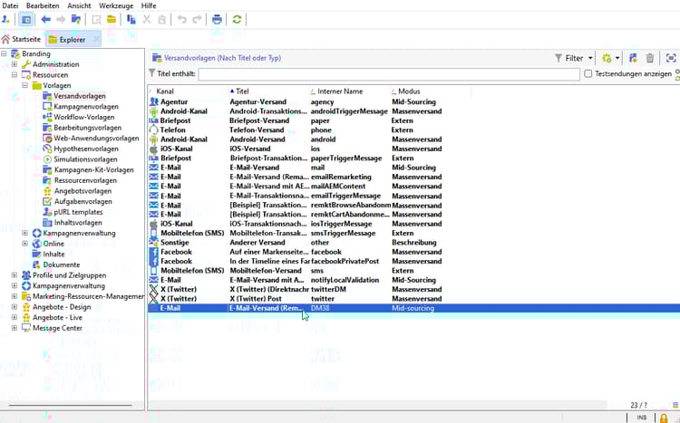 Navigieren Sie im Adobe Campaign-Explorer zu Ressourcen