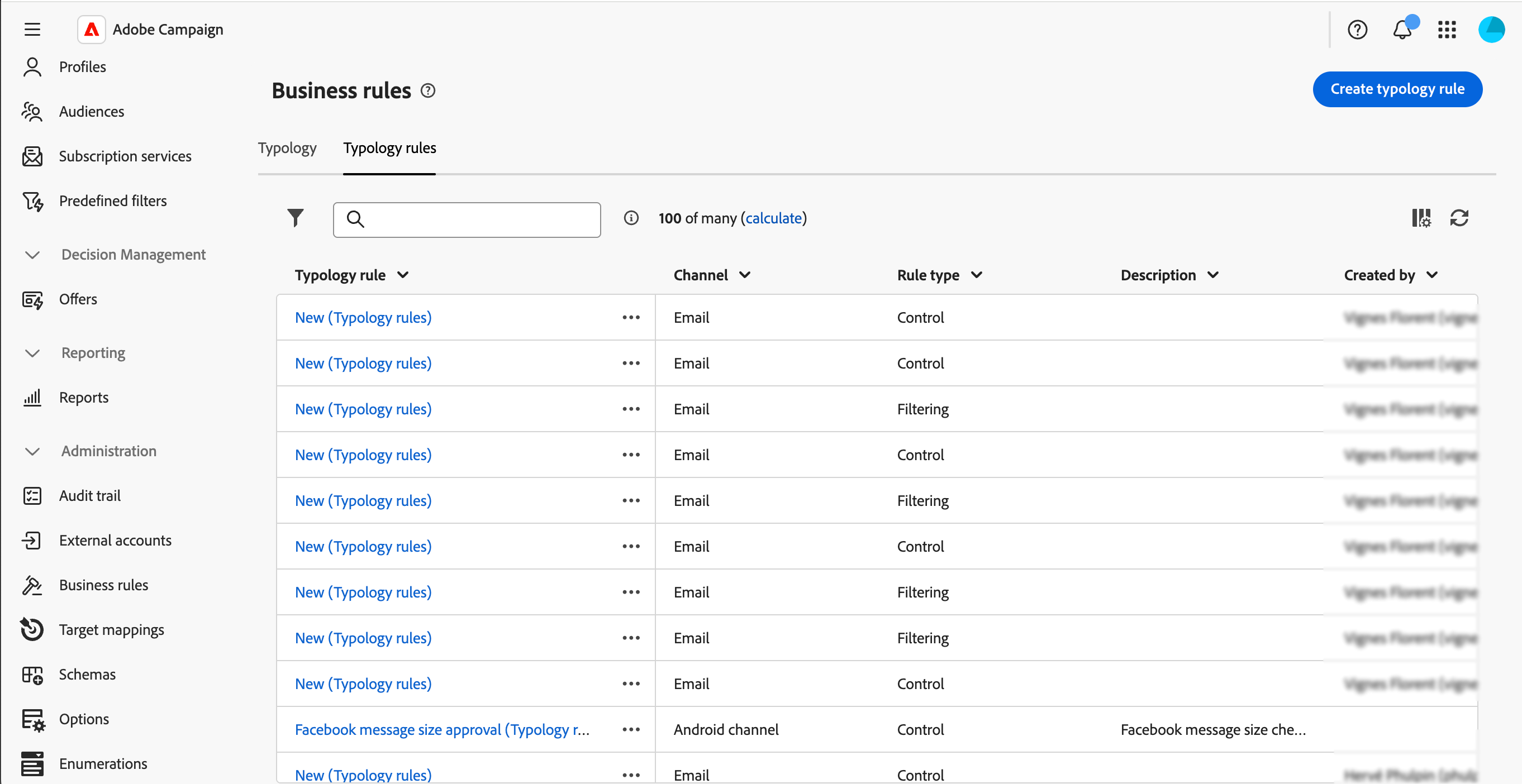 Auf Typologien können Sie über das Menü Administration > Geschäftsregeln zugreifen. Auf diesem Bildschirm greifen Sie auf alle vorhandenen Typologien und Typologieregeln zu oder erstellen je nach Bedarf neue.