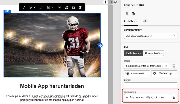 Mit Adobe Campaign E-Mail-Designer, mit dem Marketing-Fachleute Inhalte sowohl für E-Mails als auch für Landingpages erstellen können, können Sie diese Richtlinie auf Grundlage der Web Content Accessibility Guidelines (WCAG) 2.1, Level AA, problemlos einhalten.