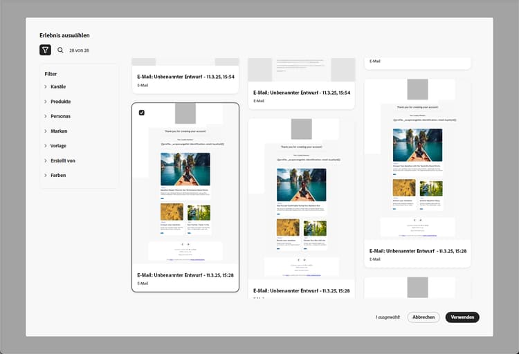 Gehen Sie wie folgt vor, um die GenStudio-E-Mail-Varianten zu nutzen, die Sie soeben durch Importieren in Adobe Campaign erstellt haben.