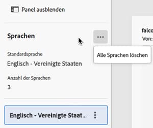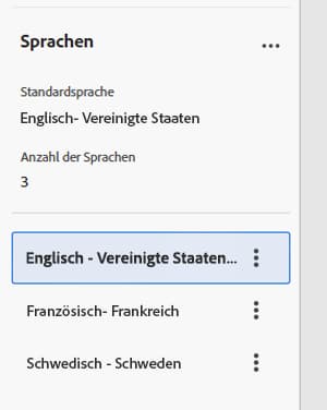 Wiederholen Sie diesen Vorgang, um weitere Sprachen hinzuzufügen. Im Panel Sprachen werden auf der linken Seite die Liste der ausgewählten Sprachen, die Anzahl der verschiedenen Sprachen sowie die Standardsprache angezeigt.