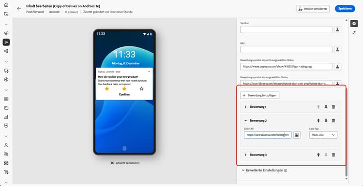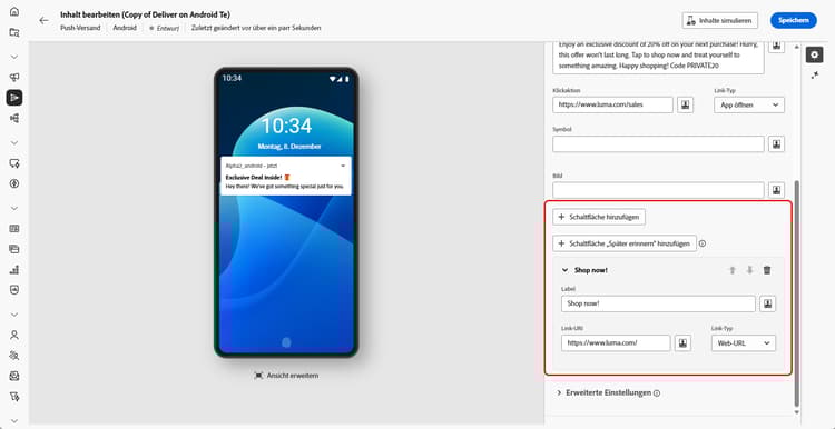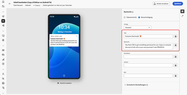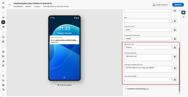 Konfigurieren Sie die erweiterten Einstellungen Ihrer Push-Benachrichtigung. Weitere Informationen