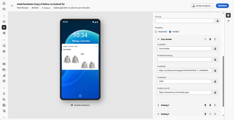 Wählen Sie aus der Dropdown-Liste Art der Benachrichtigung die Option Produktkatalog aus.