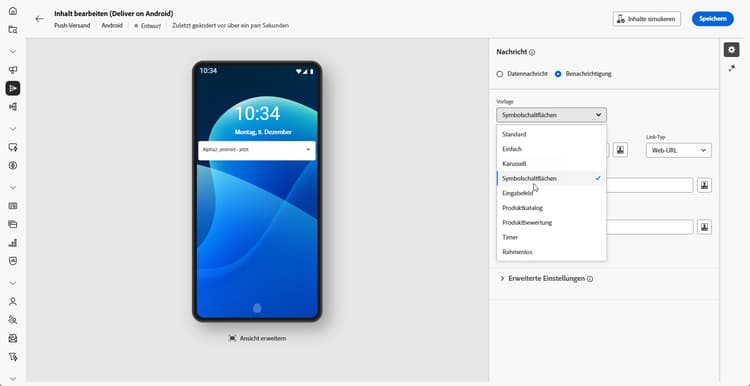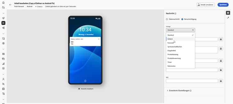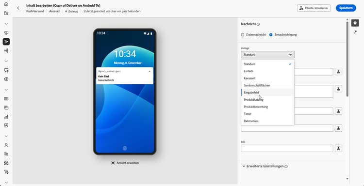 Nach der Erstellung Ihres Push-Versands können Sie dessen Inhalt mit einer der folgenden Vorlagen definieren: