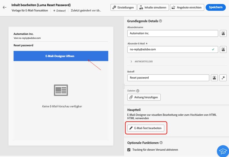 Klicken Sie im Abschnitt Inhalt auf die Schaltfläche Inhalt bearbeiten und definieren Sie den Nachrichteninhalt. Mehr dazu erfahren Sie auf dieser Seite.