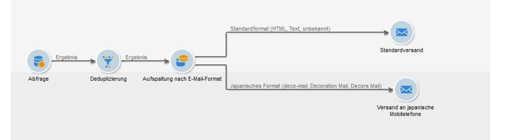 Erstellen Sie einen Workflow mit zwei Sendungen: einen Versand, der für japanische Mobiltelefone bestimmt ist, und einen zweiten für Empfänger mit einem Standard-E-Mail-Format.
