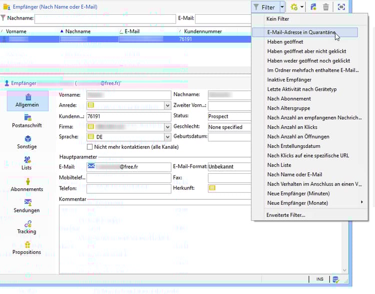 Die Adressen werden dann durch den Workflow Datenbankbereinigung“ automatisch aus der Quarantäneliste entfernt können in zukünftige Sendungen aufgenommen werden.
