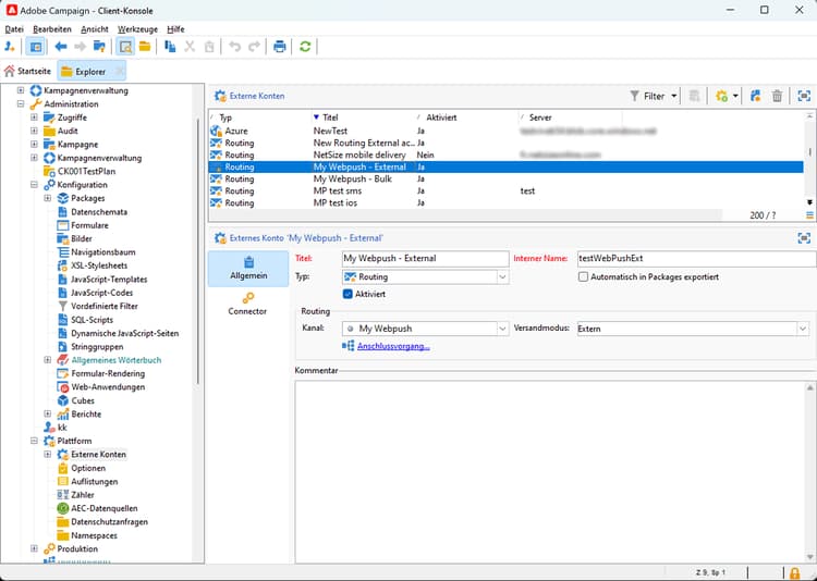 Wählen Sie im Explorer von Campaign Administration > Plattform > Externe Konten aus.
