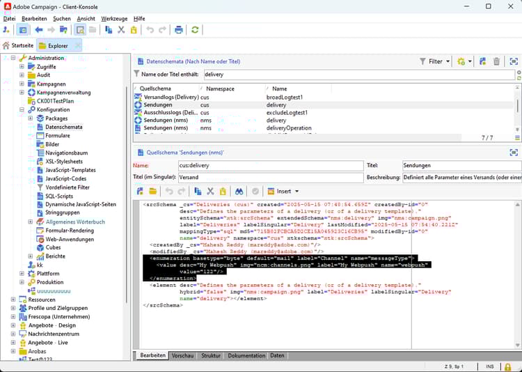 Wählen Sie im Explorer von Campaign Administration > Konfiguration > Datenschemata aus.