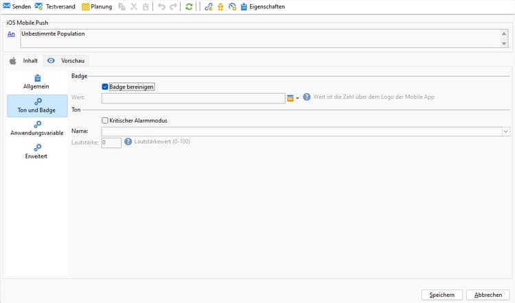 Navigieren Sie zur Registerkarte Ton und Badge, um zusätzliche Einstellungen wie Ton- und Badge-Optionen für Ihre Benachrichtigungen anzupassen. Weitere Informationen