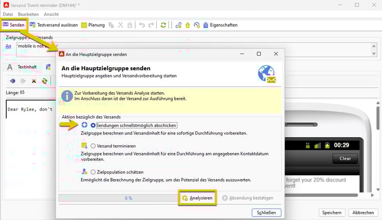 Durchführen eines SMS-Versands an die Zielgruppe sms-send-audience