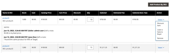 Sowohl der Positionsrabatt als auch jeder Rabatt auf Angebotsebene werden auf den Produktpreis angewendet. - Hinterlassen Sie eine Notiz an, um dem Käufer zusätzliche Informationen über einen Artikel zur Verfügung zu stellen