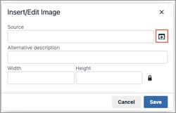 Diese Aktion öffnet das Insert/edit image Dialogfeld.