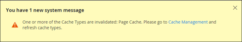 Das Cache-Management-System von Adobe Commerce und Magento Open Source bietet eine einfache Möglichkeit, die Leistung Ihrer Site zu verbessern. Wenn ein Cache eine Aktualisierung erfordert, wird eine Benachrichtigung mit einem Link zur Cache Management-Seite angezeigt, um die Aktualisierung abzuschließen.