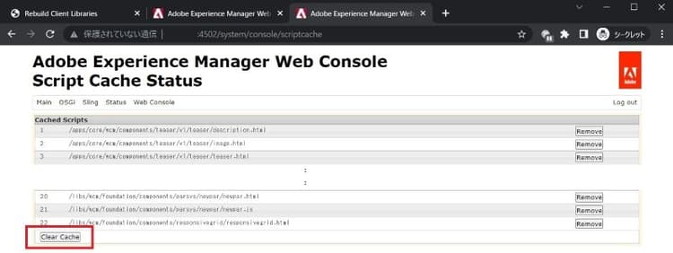 Web-Konsole > Sling > Script-Cache-Status > Cache löschen