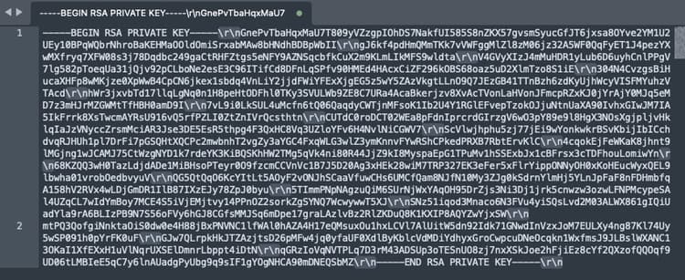 - Mehrere Zeilenumbruchzeichen sollten in Ihrem privaten Schlüssel (z. B. \r\n) aufgeführt werden, wie im folgenden Beispiel-Screenshot gezeigt.