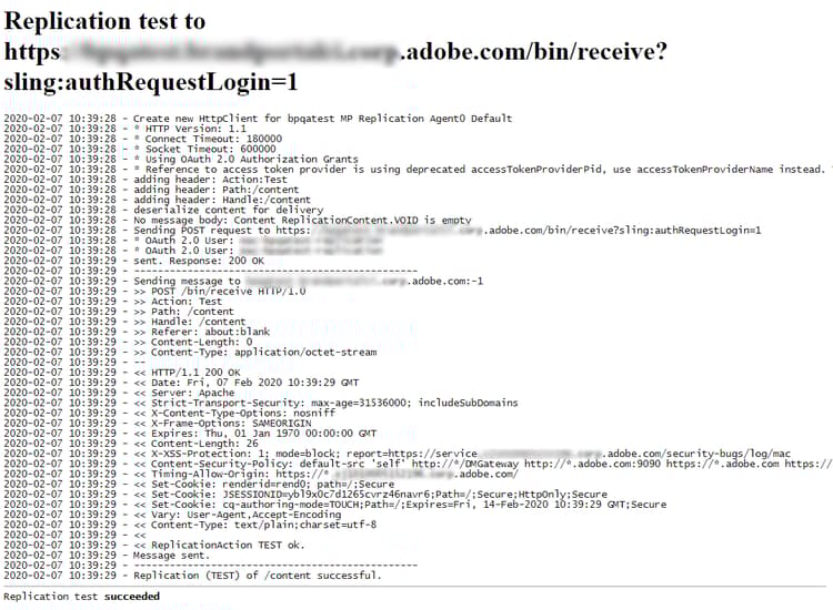 Überprüfen Sie am Ende der Testergebnisse, ob die Replikation erfolgreich war.