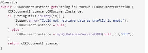 private CCRDocumentInstance mySQLDataBaseServiceCRUD(CCRDocumentInstance ccrDocumentInstance,String draftId, String method){