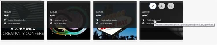 - In der Liste der Assets in einem Ordner wird das zuletzt hochgeladene Asset oben angezeigt.
