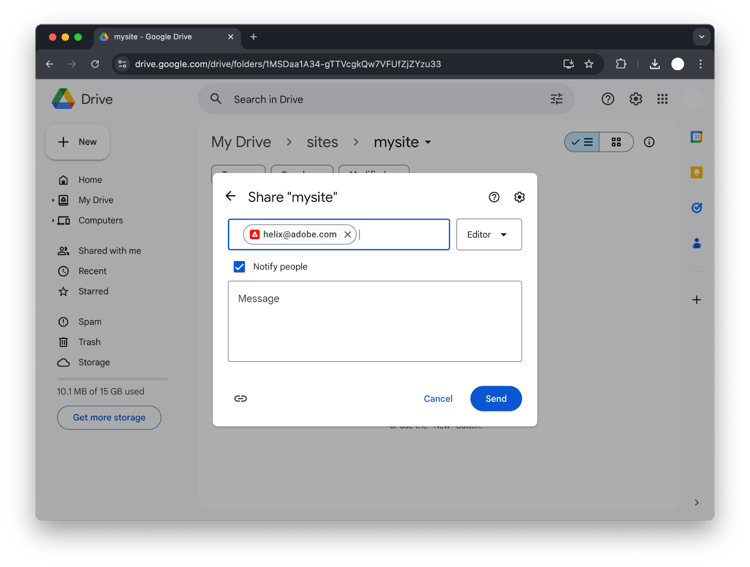 Um eigene Inhalte zu erstellen, erstellen Sie einen Ordner in Ihrem eigenen Google Drive und geben Sie den Ordner für den Adobe Experience Manager-Benutzer frei (helix@adobe.com).