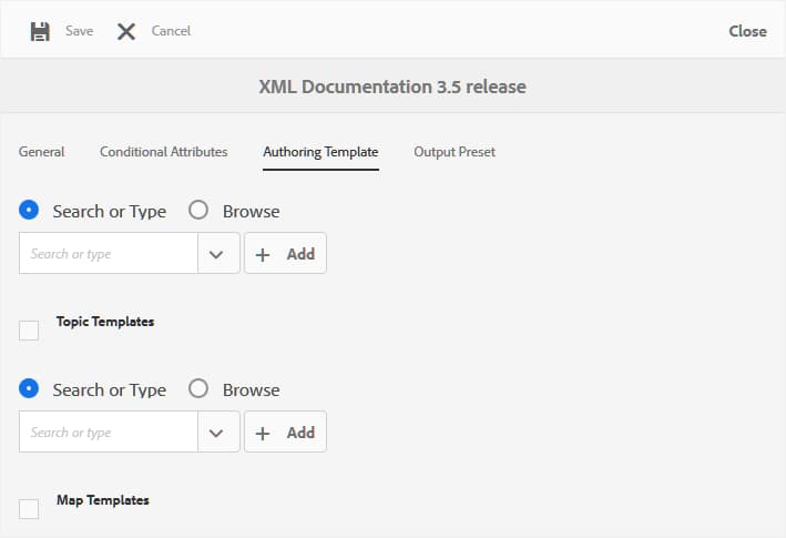 Publisher können diese vordefinierten Ausgabevorgaben verwenden, um Inhalte zu veröffentlichen. Diese Vorgaben können von einem Administrator des globalen Profils oder des Profils auf Ordnerebene konfiguriert werden. Nach der Konfiguration werden die Veröffentlichungsvoreinstellungen den Publishern für neu erstellte DITA-Zuordnungen zur Verfügung gestellt. Sie können auch Veröffentlichungsvorgaben auf vorhandene DITA-Zuordnungen anwenden. Weitere Informationen finden Sie unter Anwenden Vorgabenänderungen“.