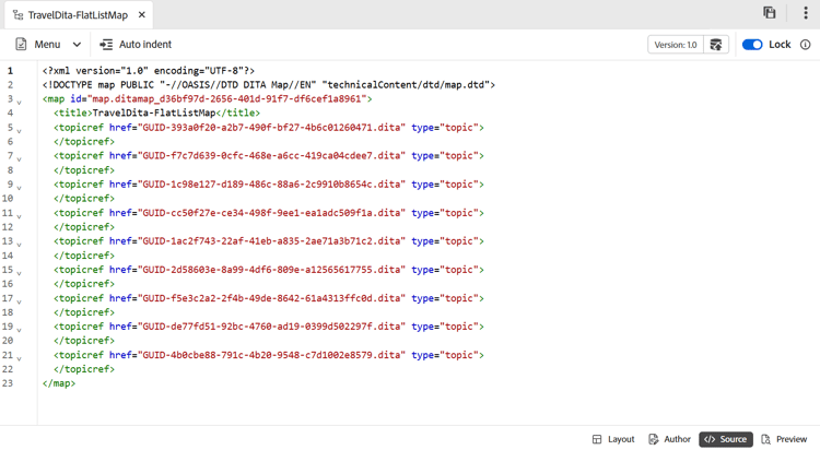 Navigieren Sie im Repository-Bedienfeld zu der DITA-Zuordnungsdatei, die Sie bearbeiten möchten, und öffnen Sie sie.