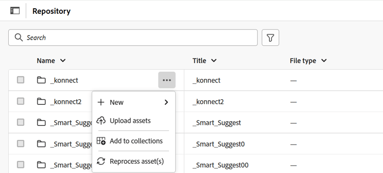 Diese einheitliche Benutzeroberfläche optimiert mehrere Funktionen, einschließlich der Erstellung neuer Dateien oder Ordner, der Bearbeitung von Dateien, dem Hochladen von Assets und der Suche nach Dateien mit robusten Filteroptionen, wodurch Effizienz und Benutzerfreundlichkeit gewährleistet sind.