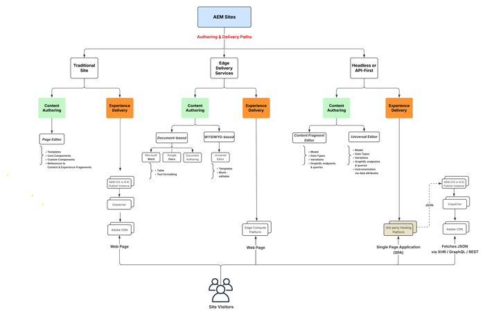 Drei Möglichkeiten zur Bereitstellung von Erlebnissen mit AEM Sites