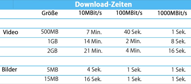 Beispielsweise sollten entsprechende Netzwerkkomponenten mindestens auf den Standard 100 MBit/s ausgelegt sein und mit den Bandbreitenspezifikationen des Internet-Zugangs/-Routers übereinstimmen.