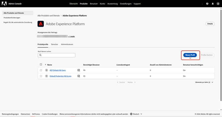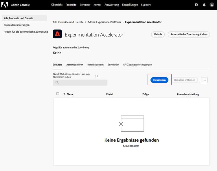 Wählen Sie unter Produkte die Option Adobe Experience Platform.