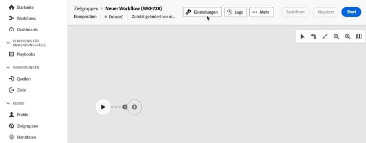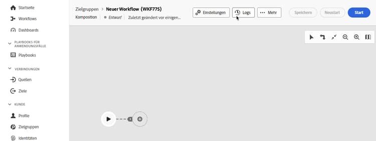 Nachdem Sie Ihre Aktivitäten zur Komposition hinzugefügt haben, können Sie die Ausführung der Komposition starten. Um eine Komposition zu starten, wählen die Schaltfläche Starten“ in der oberen rechten Ecke des Bildschirms aus.