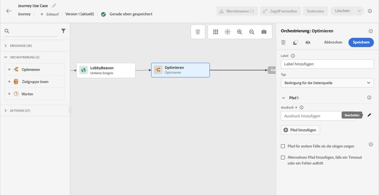 In Adobe Journey Optimizer muss zunächst die Datenquelle mit dem neuen Schema konfiguriert werden.