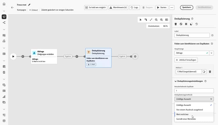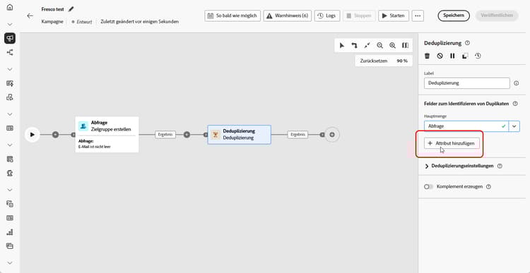 Fügen Sie Ihrer orchestrierten Kampagne eine Aktivität des Typs Deduplizierung hinzu.