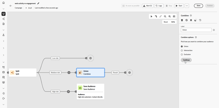 Kombinieren Sie Segmente mit niedrigem und mittlerem Risiko mit einer Aktivität des Typs Vereinigung.