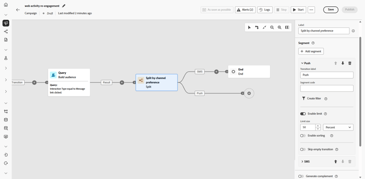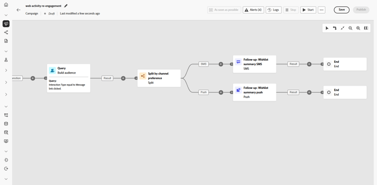 Teilen Sie die Interaktion gleichmäßig auf, um eine Folgenachricht über SMS oder Push-Benachrichtigungen zu senden und so Konversionen zu fördern.