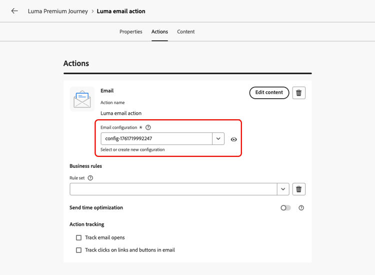 Klicken Sie auf dem Konfigurationsbildschirm der Journey oder Kampagne auf die Schaltfläche Inhalt bearbeiten, um den Inhalt der E-Mail zu konfigurieren. Weitere Informationen