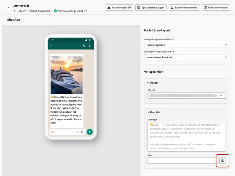 Hinzufügen einer WhatsApp-Nachricht create-whatsapp-journey-campaign