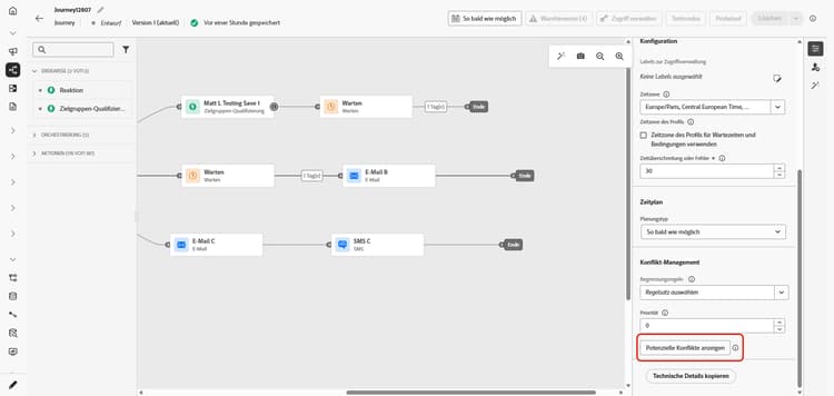 note note NOTE Bei neu veröffentlichten Journeys und Kampagnen kann es aufgrund dem implementiertem Caching 3 bis 7 Minuten dauern, bis sie im Konflikt-Viewer angezeigt werden