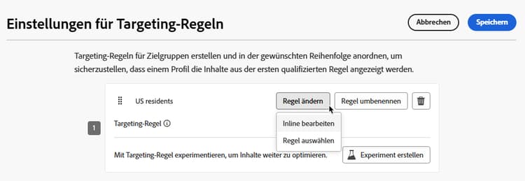 Speichern Sie Ihre Einstellungen für die Targeting-Regel.