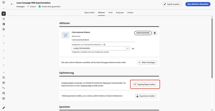 Wählen Sie im Abschnitt Optimierung die Option Targeting-Regel erstellen.