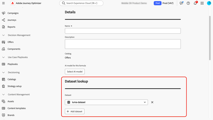 - Lookup-Limits: Journey Optimizer unterstützt bis zu 1.000 Suchen pro Entscheidungsrichtlinie.