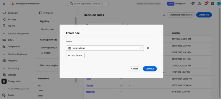 Gehen Sie wie folgt vor, um Adobe Experience Platform-Daten in Entscheidungsregeln zu verwenden: