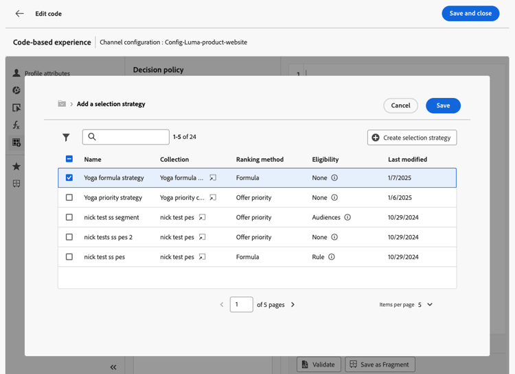 Nachdem Sie die beiden Auswahlstrategien konfiguriert haben, erstellen Sie eine Code-basierte Erlebniskampagne, bei der Sie für jede Strategie eine andere Abwandlung definieren, um zu vergleichen, welche am besten funktioniert.