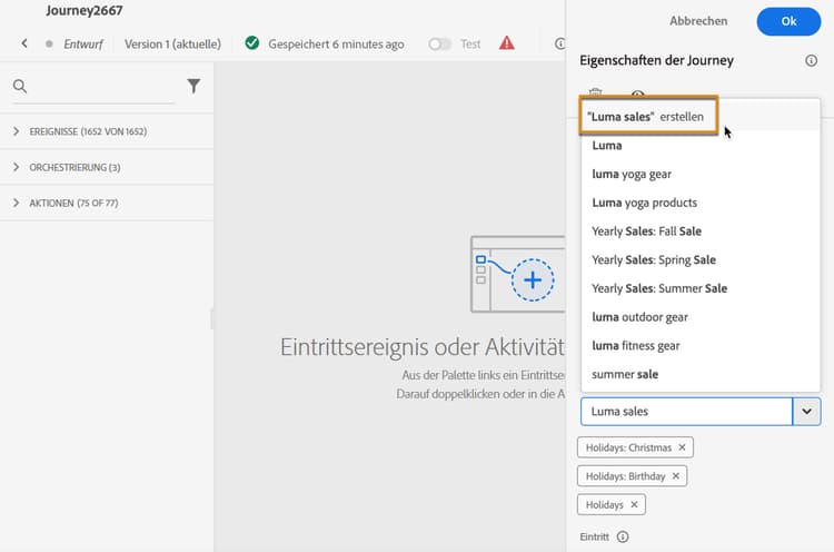 Mit einheitlichen Tags in Adobe Experience Platform können Sie Ihre Journey Optimizer-Objekte einfach klassifizieren, um die Suche über Listen zu verbessern.
