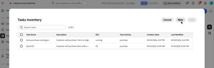 Jede Aufgabe stellt eine messbare Aktion dar, die zum Abschluss der Herausforderung beiträgt. Aufgaben sind wiederverwendbare Komponenten, die unabhängig erstellt und dann zu einer oder mehreren Herausforderungen hinzugefügt oder direkt in einer Herausforderung erstellt werden können.